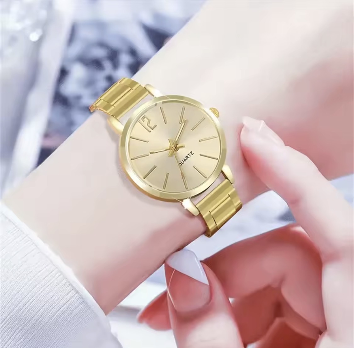 Women’s Watch Bracelet Set Stainless Steel Strap Woman Gift Quartz Round Dial