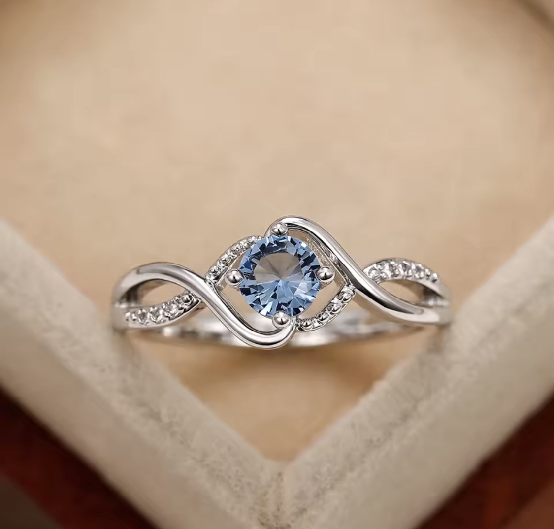 Charming Blue Cubic Zirconia High Quality Silver Bridal Ring
