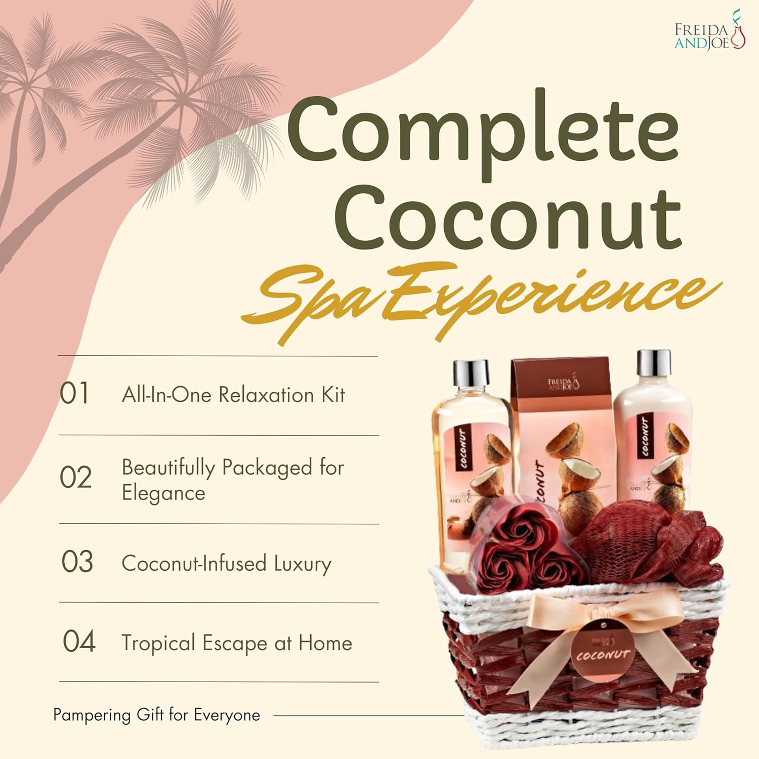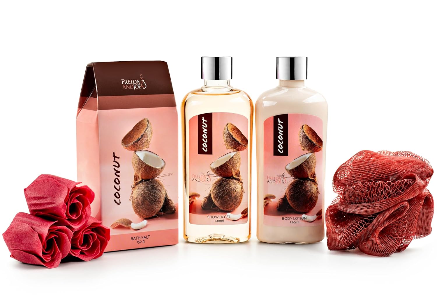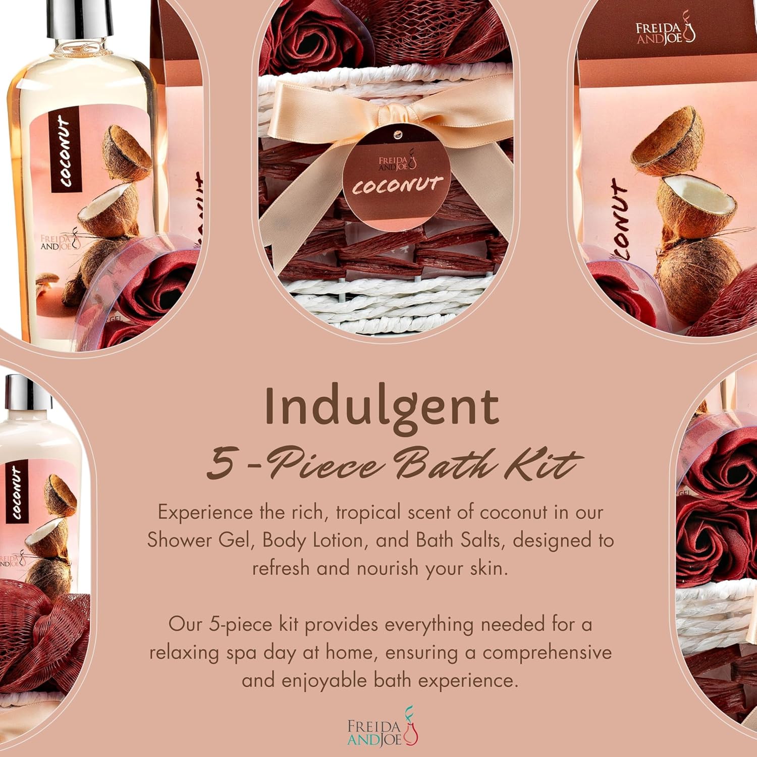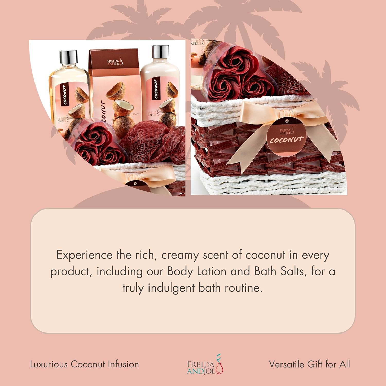 Coconut Spa Valentines Gift Basket Bath & Body Set with Shower Gel