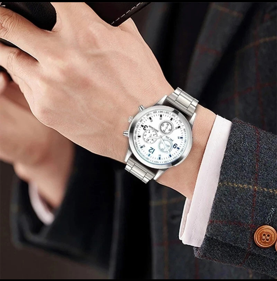 4pcs Men Watch Set – Casual Stainless Steel Quartz Wristwatch with Calendar