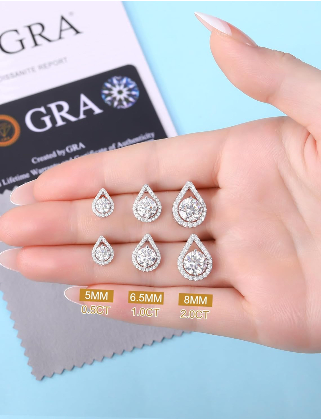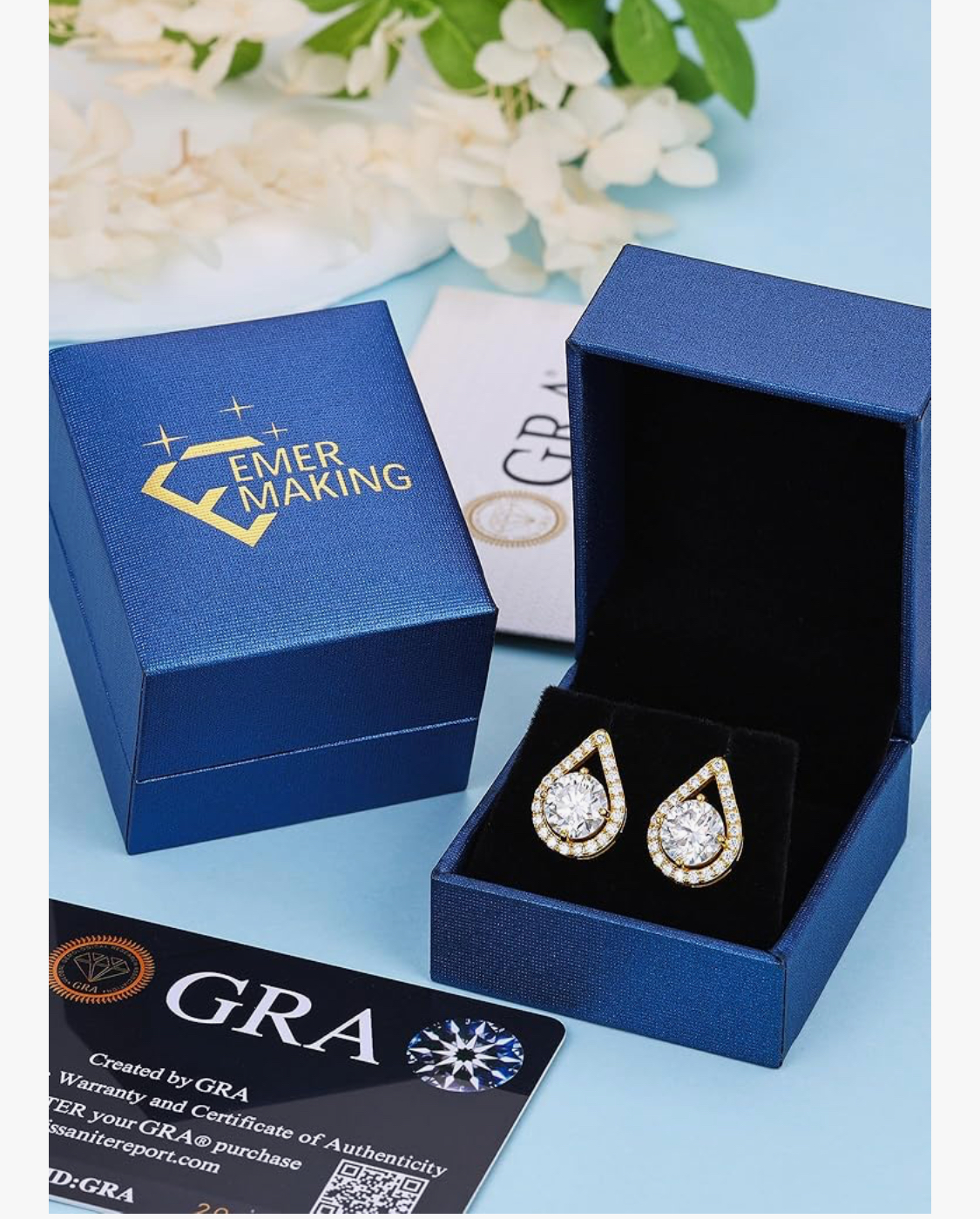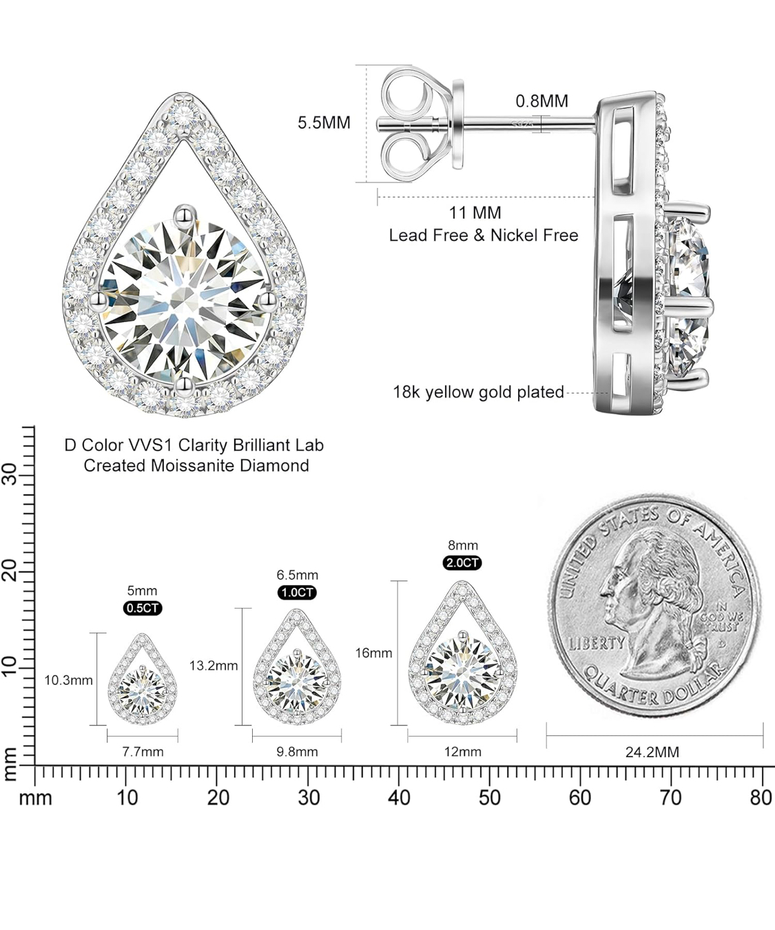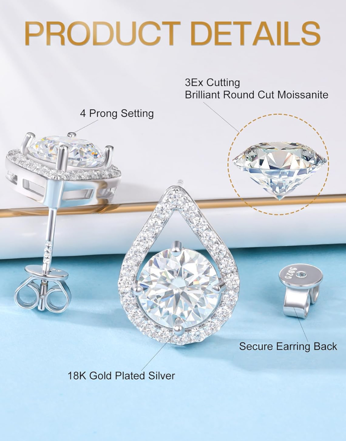 Moissanite Stud Earrings, 18K White/Yellow Gold Plated, 925 Sterling Silver 1.0-4.0ct D Color VVS1 Clarity, Lab Created Diamond Stud Friction Back Earring Jewelry for Women