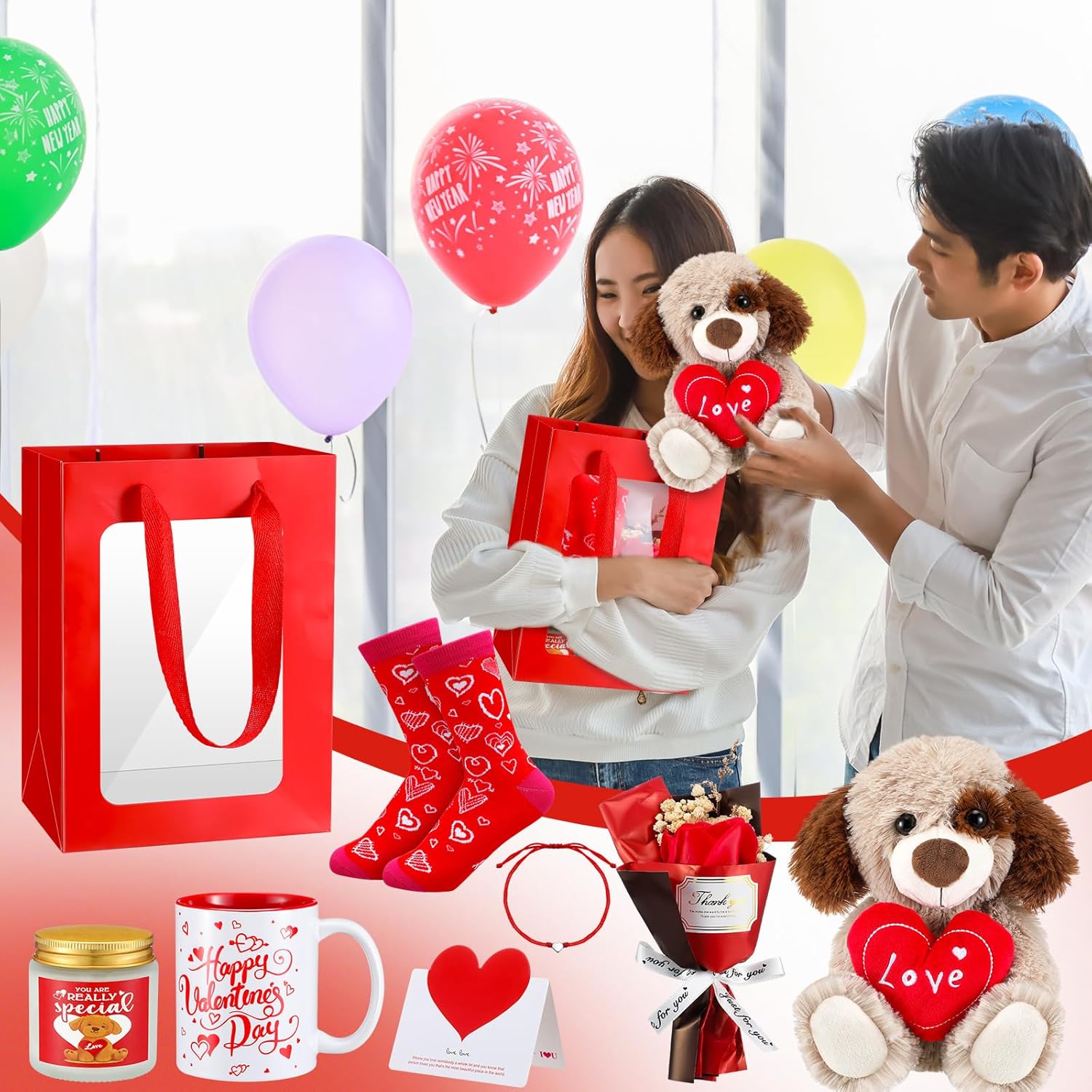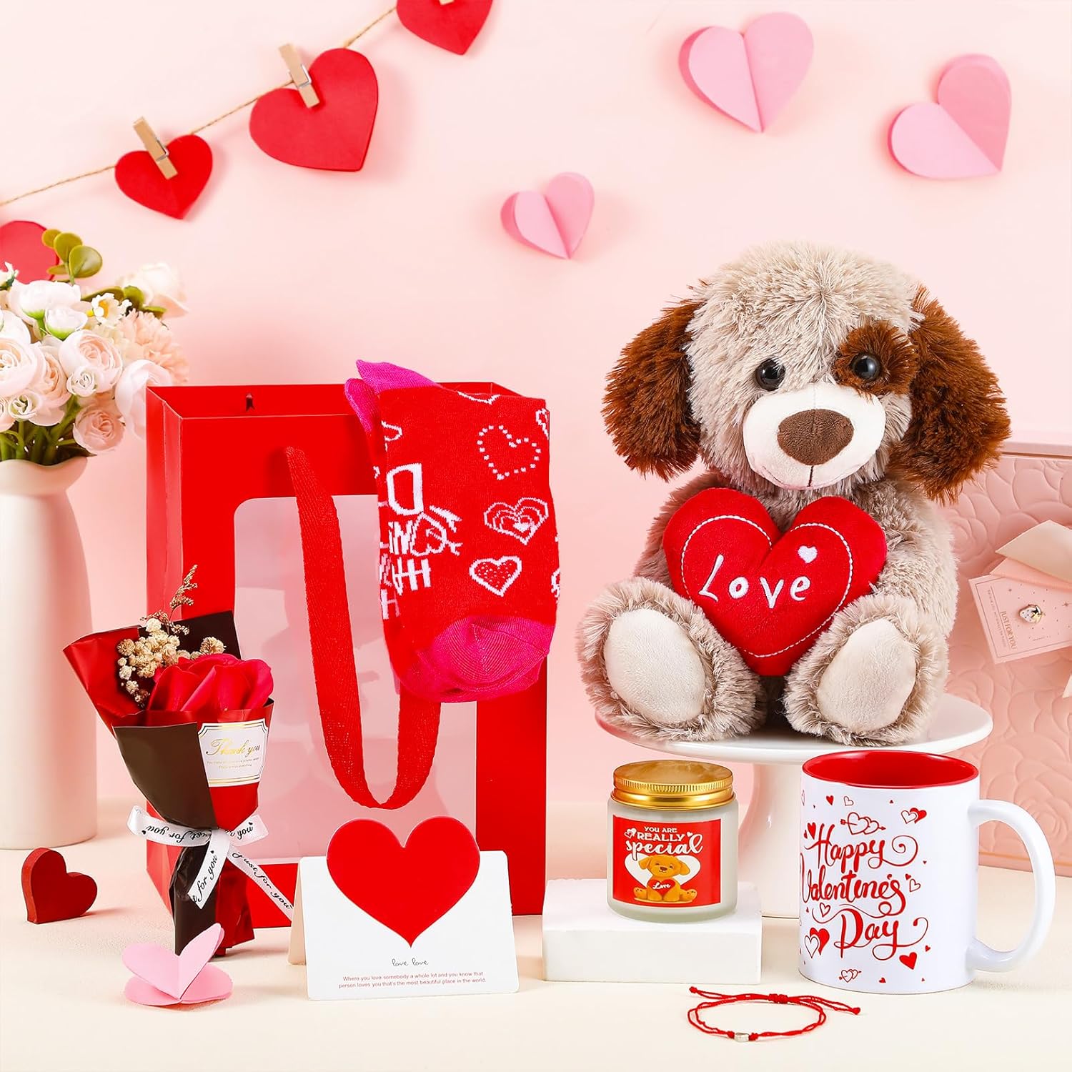 Syhood 8 Pcs Valentine Bear Dog Plush