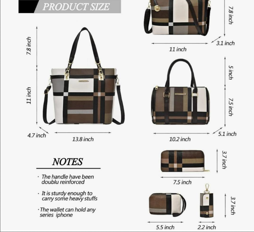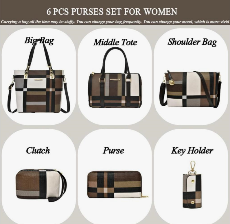 This is a 6pc purse set of designer handbags for women